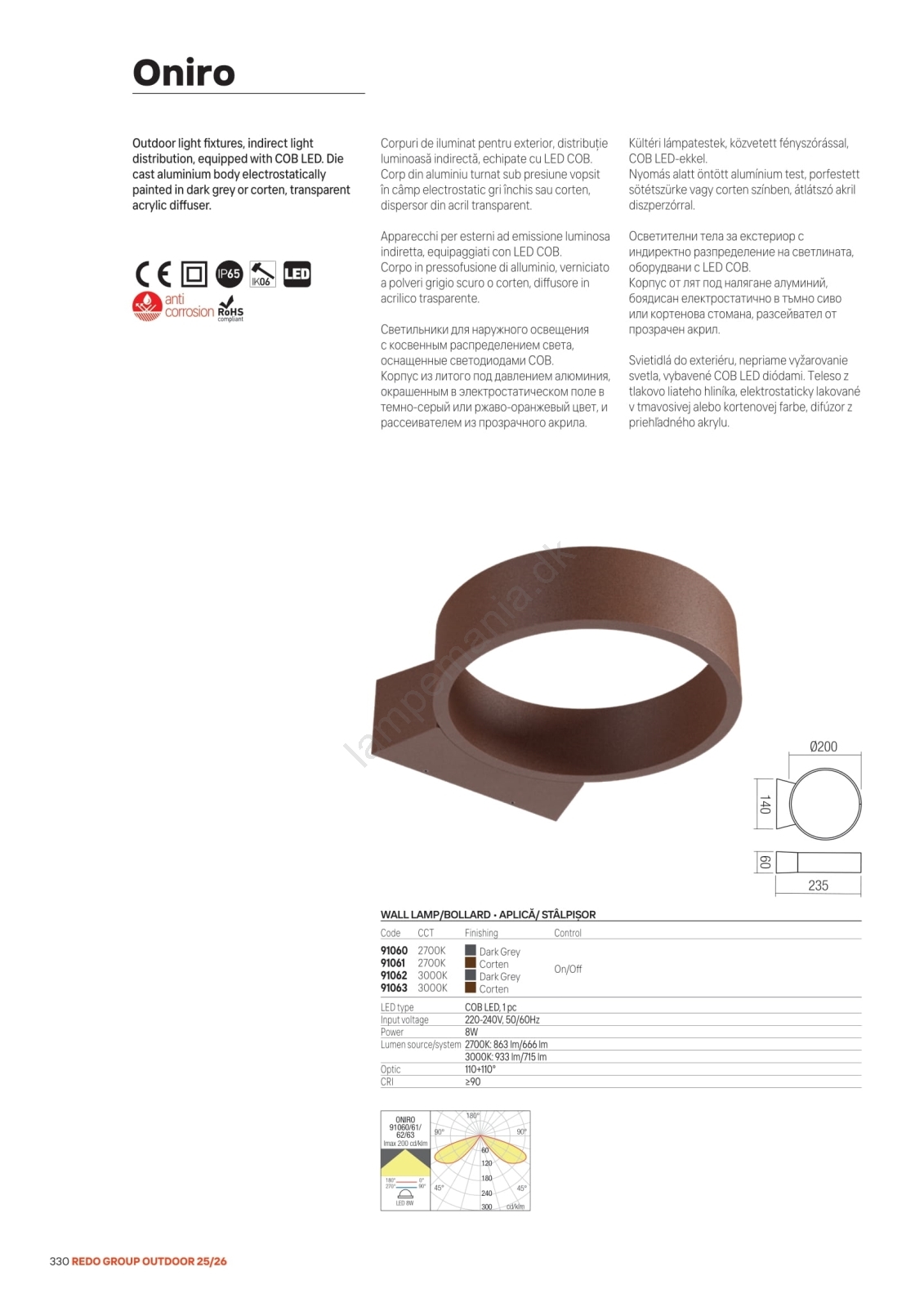 • Redo 91063 - LED udendørs væglampe ONIRO LED/8W/230V 3000K CRI 90 IP65 brun