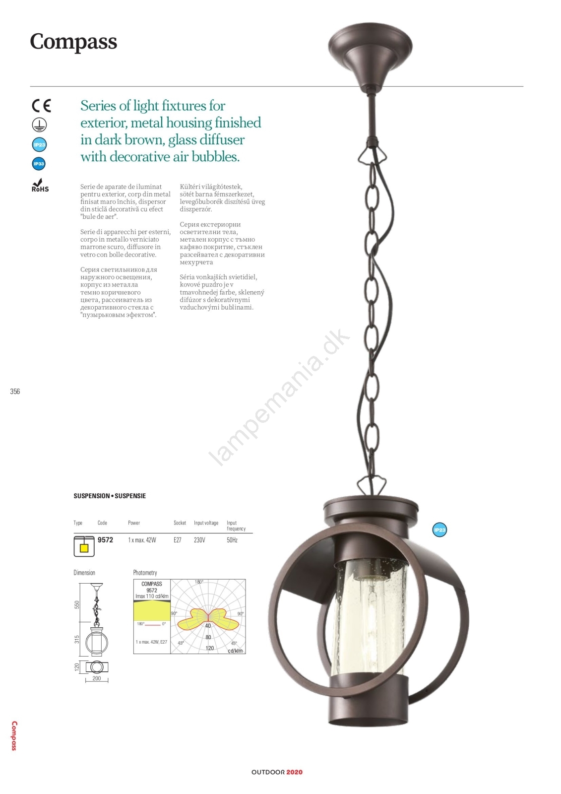 Redo 9573 - Udendørslampe COMPASS 1xE27/42W/230V IP33 er kendetegnet ved et flot og funktionelt design.  En lyspære med E27-fatning passer til denne lampe. Her kan du købe andre pærer til fordelagtige priser. Du får en interessant tilføjelse til dit hjem.