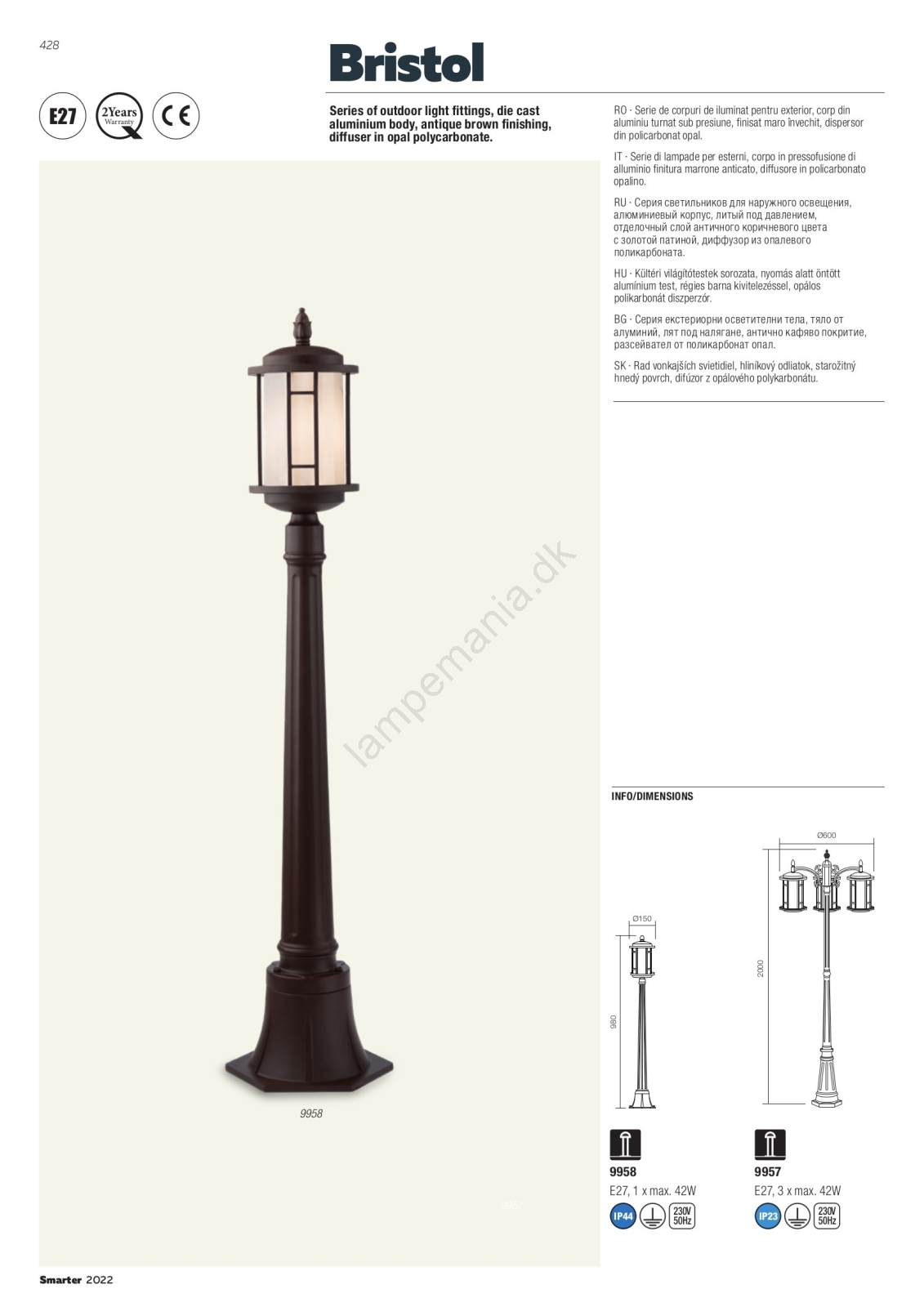 Redo 9956 - Udendørs lysekrone med kædeophæng BRISTOL 1xE27/42W/230V IP23 er kendetegnet ved et flot og funktionelt design.  En lyspære med E27-fatning passer til denne lampe. Her kan du købe andre pærer til fordelagtige priser. Du får en interessant tilføjelse til dit hjem.