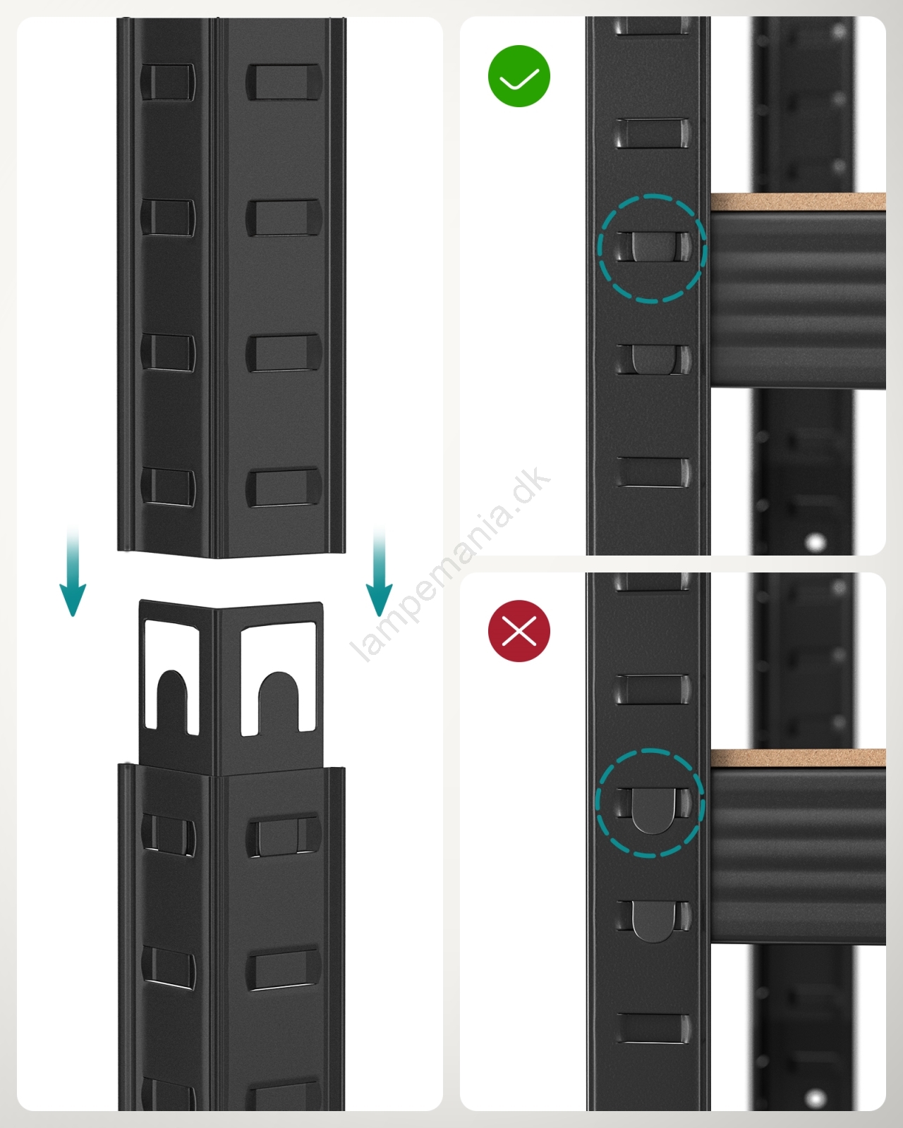 • Pakken indeholder vægfastgørelsessæt, der hjælper dig med at fastgøre reolen til væggen, så den bliver mere stabil og sikker.