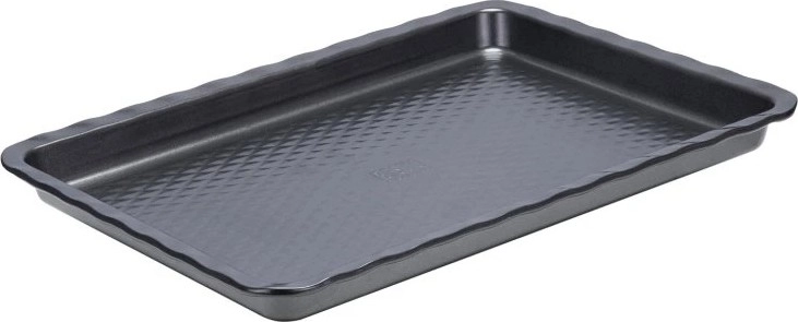 • Den ribbede bund sikrer luftcirkulation under maden, hvilket giver et jævnt og sprødt bageresultat.
