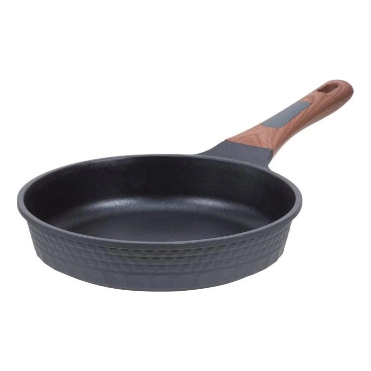 • Et ergonomisk håndtag med Soft-Touch-overflade og trælook giver et behageligt og sikkert greb ved brug, og panden får samtidig et stilfuldt udtryk.