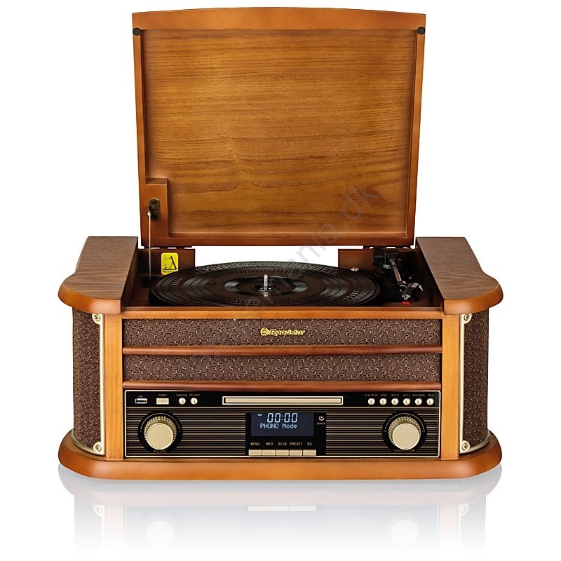 • Pladespilleren har hastighederne 33/45/78 omdrejninger pr. minut og en tonearmsmekanisme med Autostop og Autoreturn.