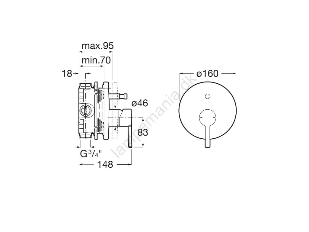 • Et etgrebsarmatur til nem regulering af temperatur og vandstrøm.