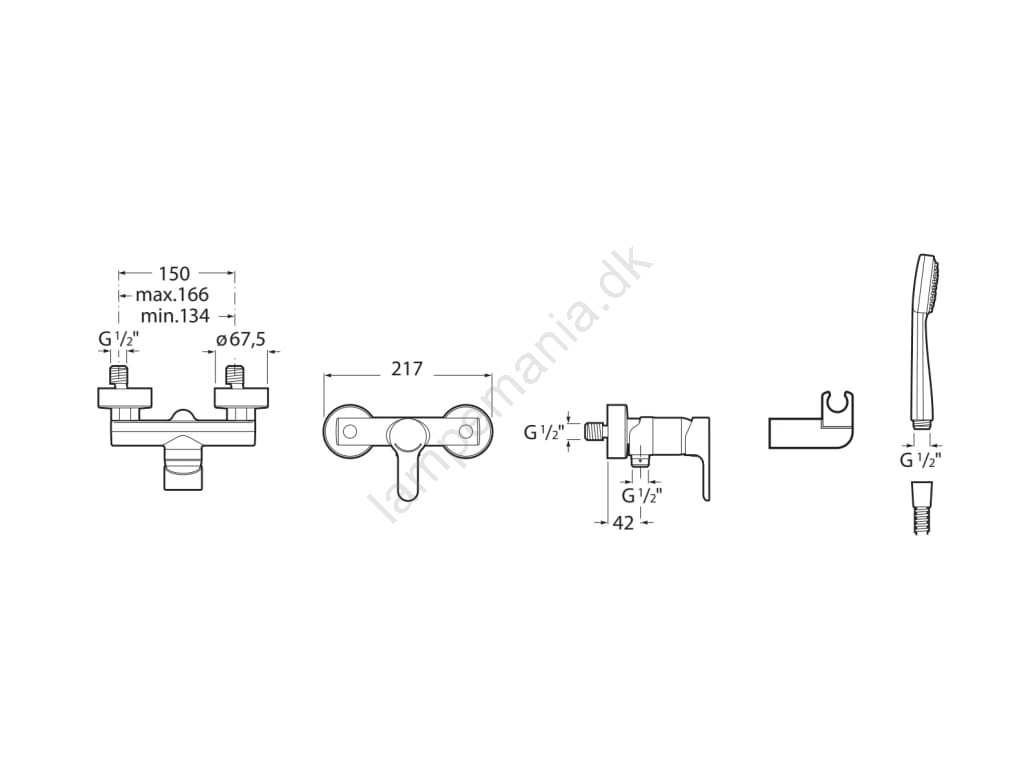 • Pakkeindhold: brusebatteri, håndbruser, fleksibel slange 1,5 m, drejelig vægholder.
