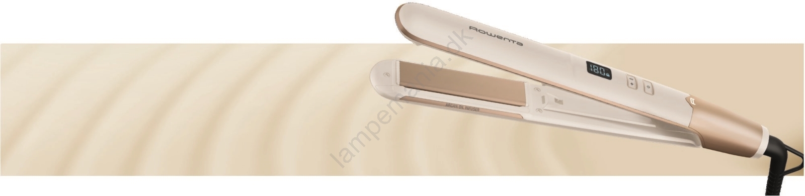 • Temperaturområde: 8 justerbare niveauer fra ca. 140 °C til 210 °C, med en skånsom plejetilstand ved 170 °C til skånsom glatning.