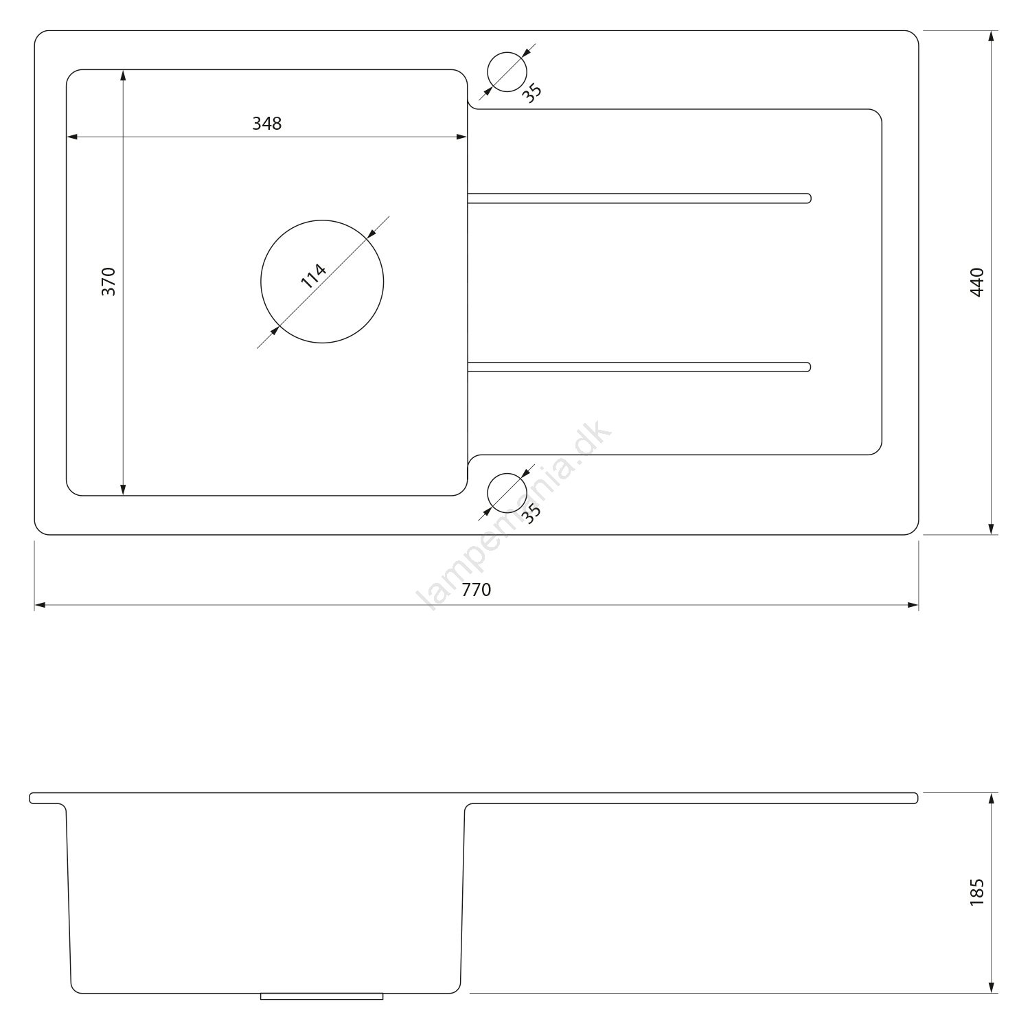 • Leveres med bundventil og sifon med afgrening til opvaskemaskine eller vaskemaskine.