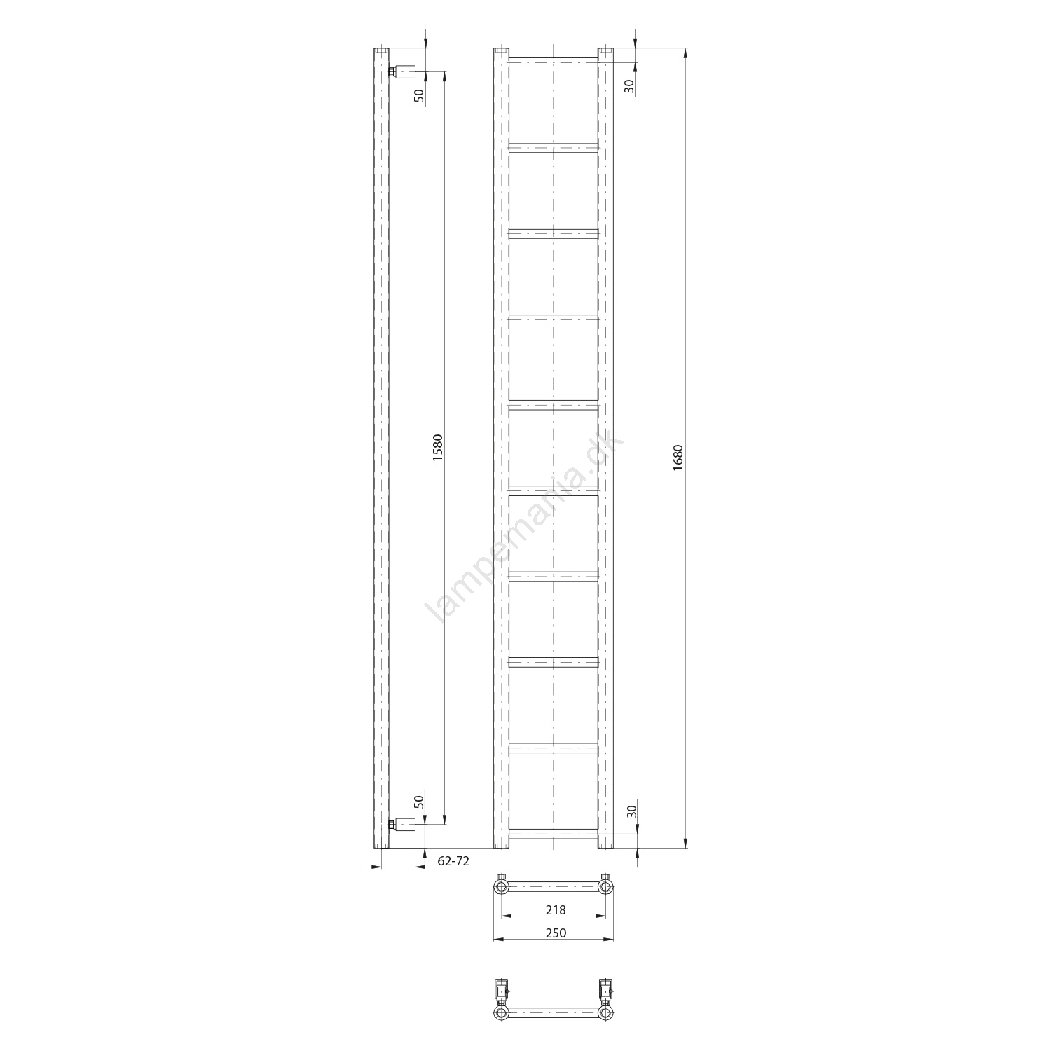 Sapho - Badeværelsesradiator DINA 282W 25x168 cm mat sort