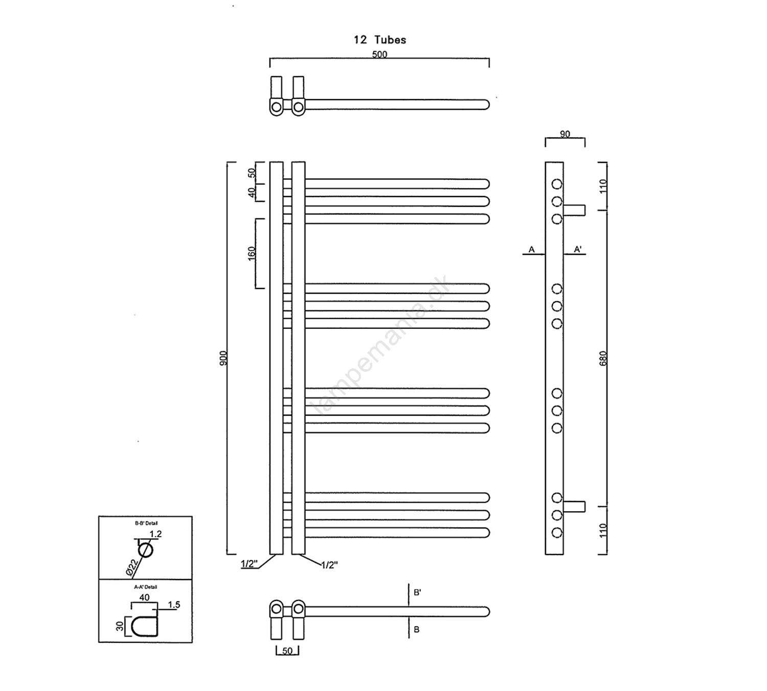 Sapho - Badeværelsesradiator DORLION 300W/230V 50x90 cm mat sort