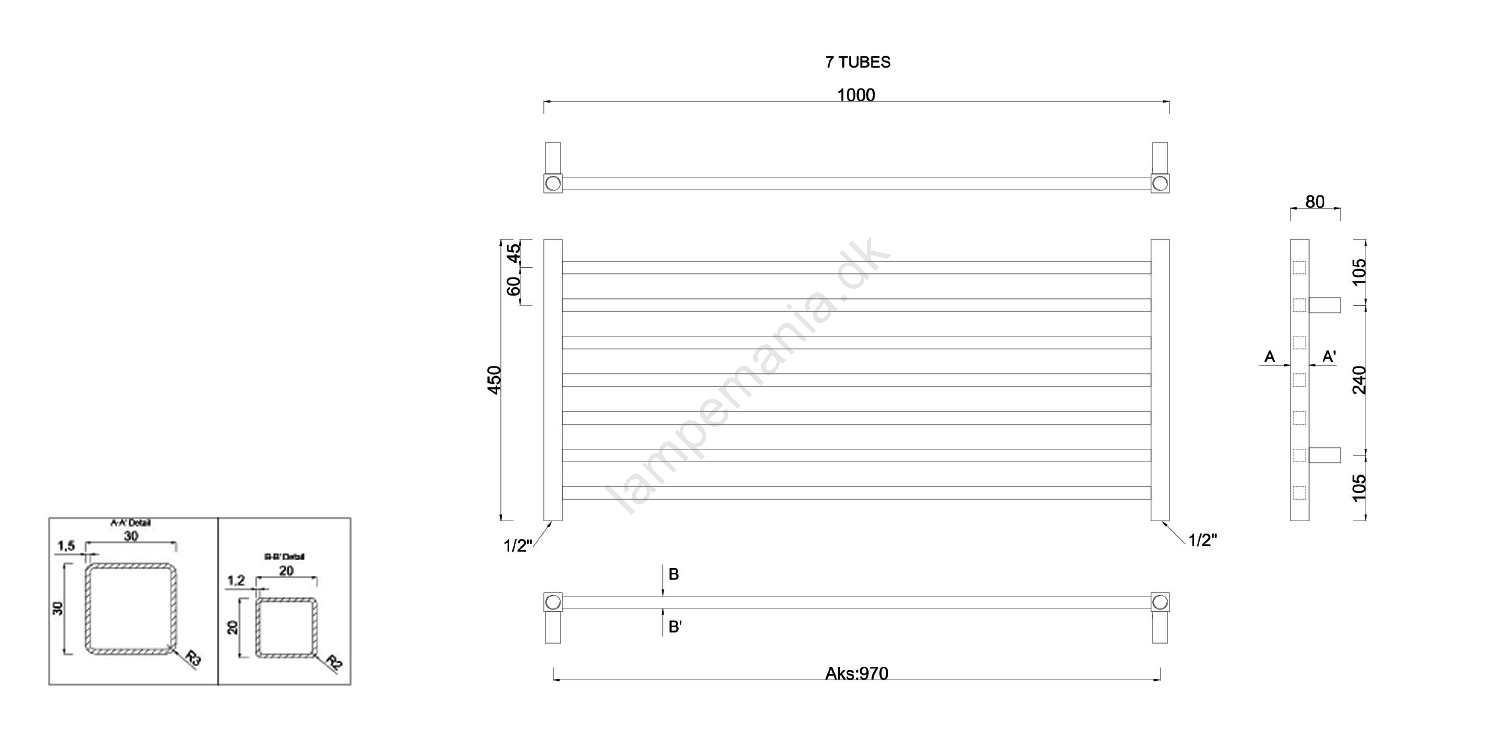 Sapho - Badeværelsesradiator METRO 295W/230V 100x45 cm blank krom