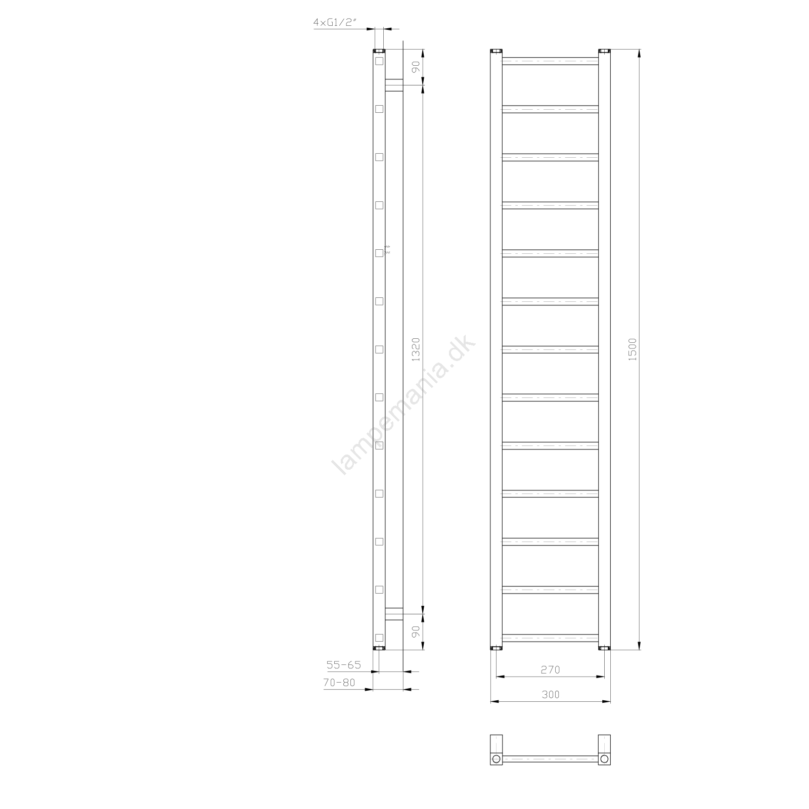 Sapho - Badeværelsesradiator METRO LIGHT 276W 30x150 cm hvid