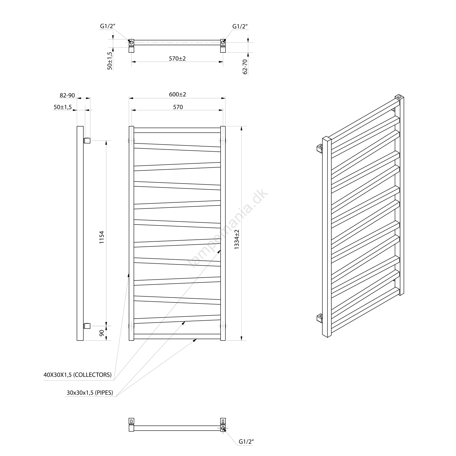 Sapho - Badeværelsesradiator ZIG 601W/230V 60x133 cm sort