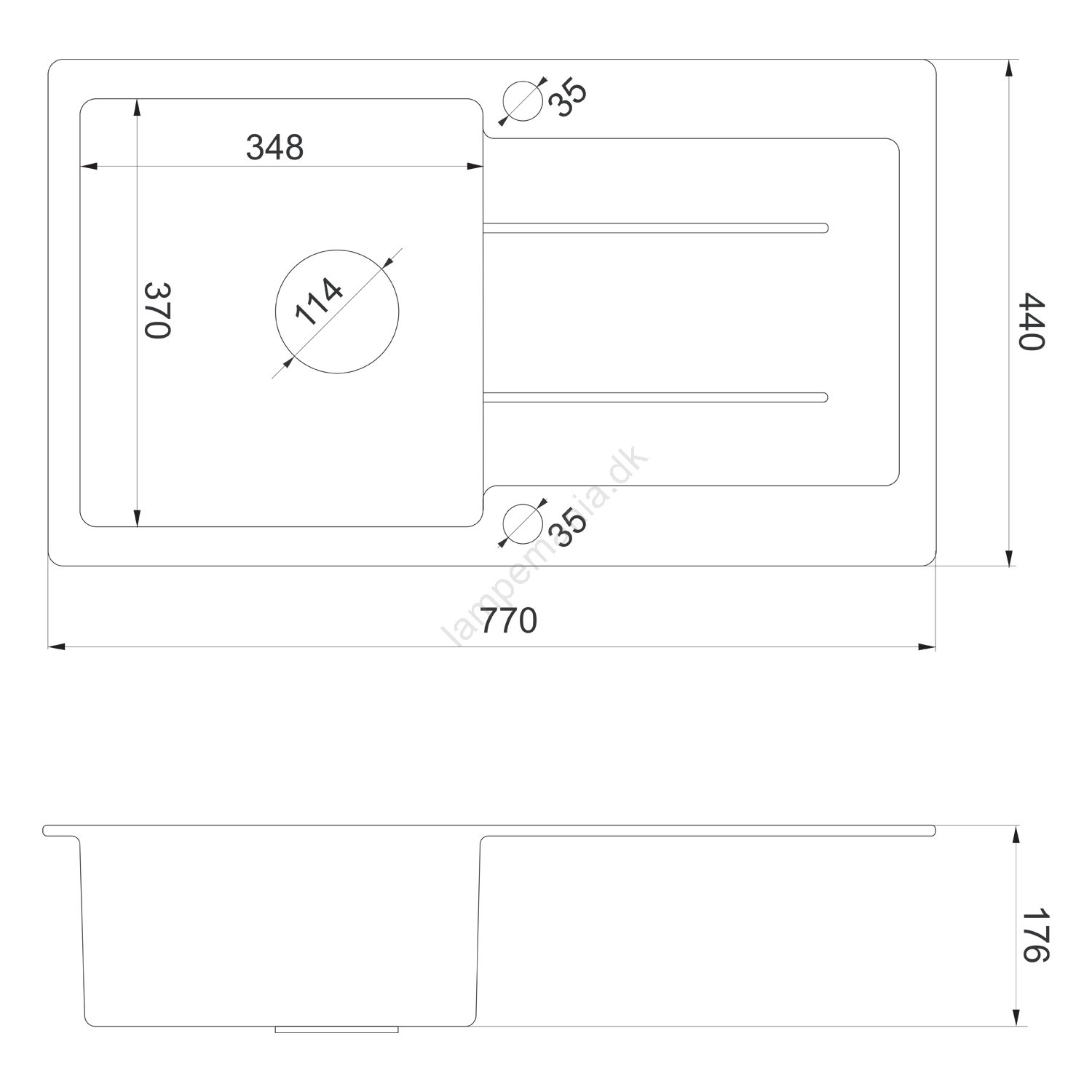 • Vasken er fremstillet af granit og har en afløbsplade.