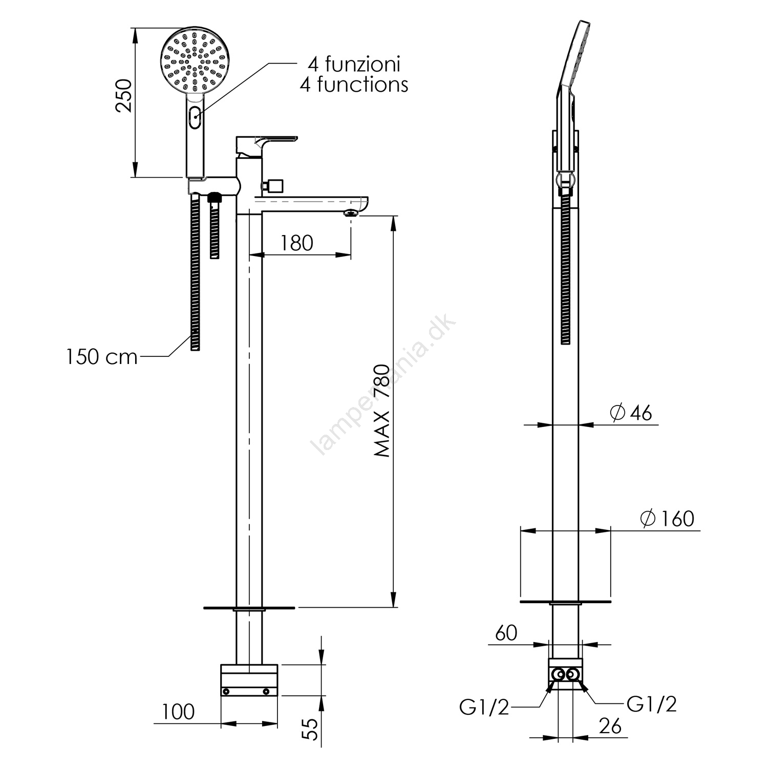 • Denne gulvmonterede badekararmatur er designet til tilslutning i gulvet.