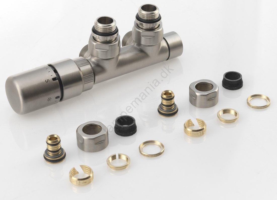 Sapho - Termostatisk tilslutningssæt til midtertilslutning TWIN venstre/mat rustfrit stål