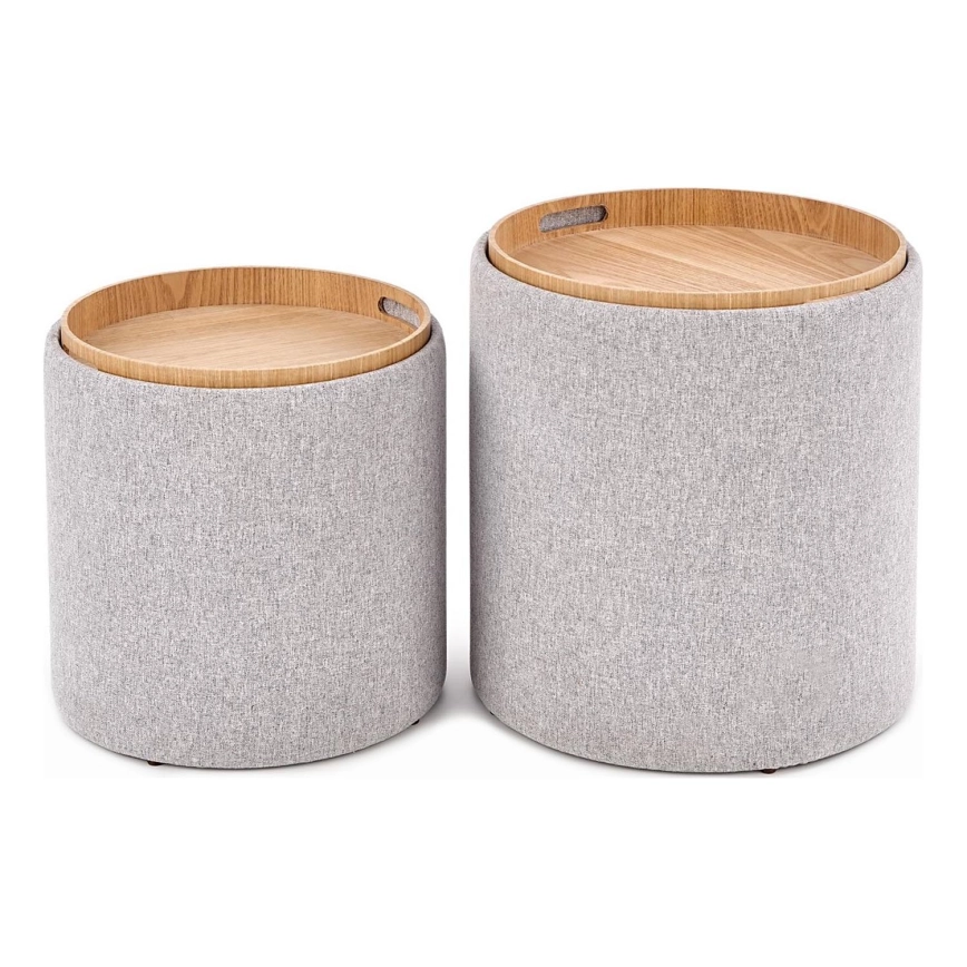 Sæt med 2 AVIKO-taburetter, Ø 38/45 cm, grå/beige