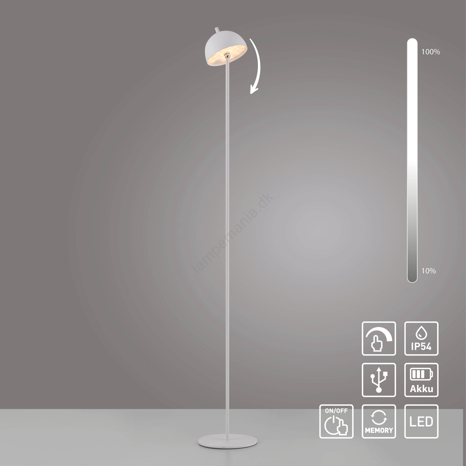 Schöner Wohnen 19245-16 - BELLIS dæmpbar berøringsbetjent genopladelig udendørs gulvlampe LED/2,5W/5V 2600 mAh IP54 hvid