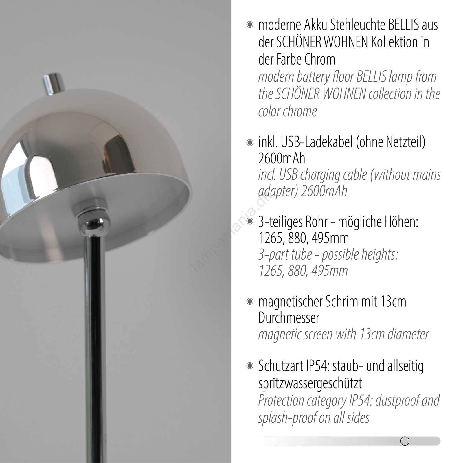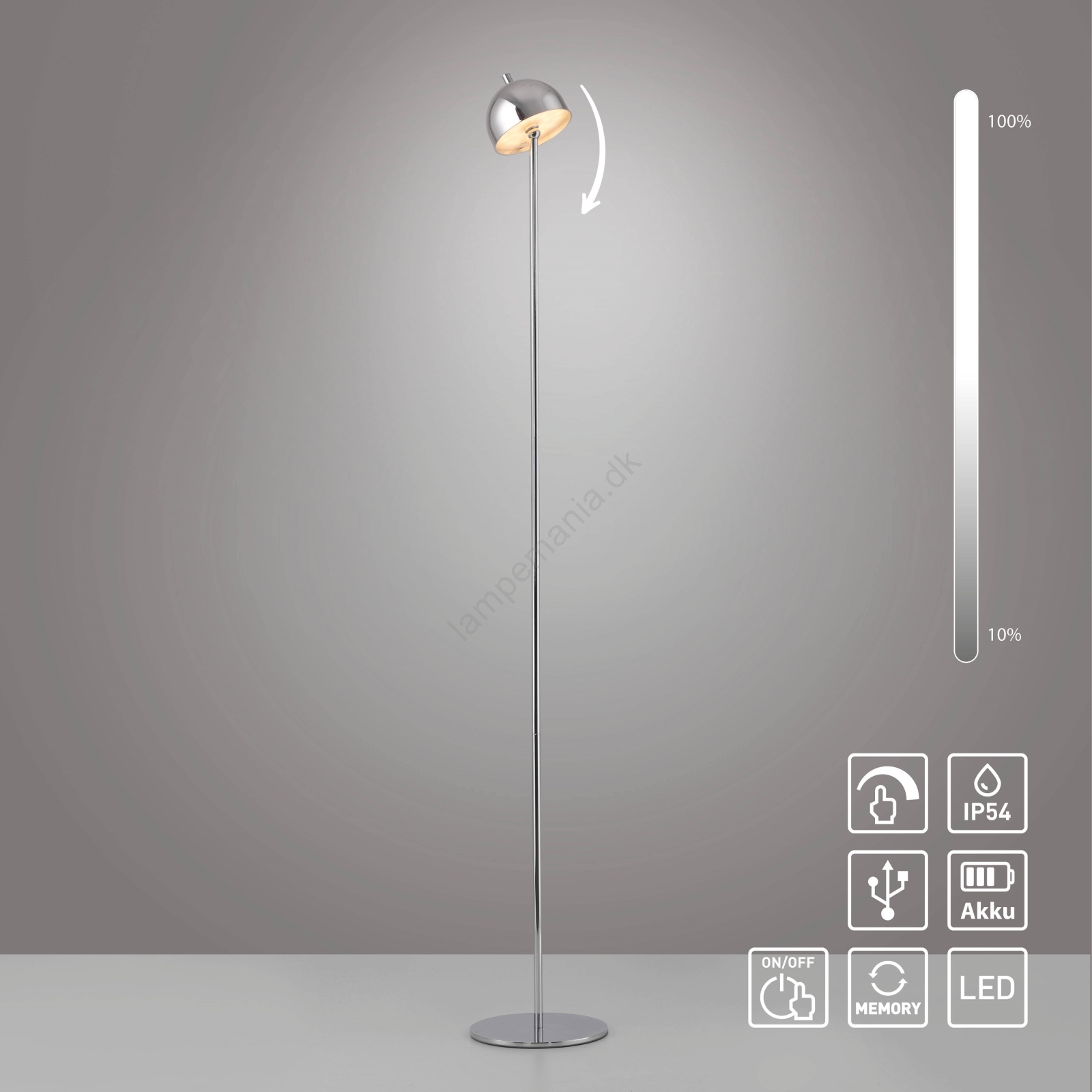 Schöner Wohnen 19245-17 - LED dæmpbar berøringsbetjent genopladelig udendørs gulvlampe BELLIS LED/2,5W/5V 2600 mAh IP54 blank krom