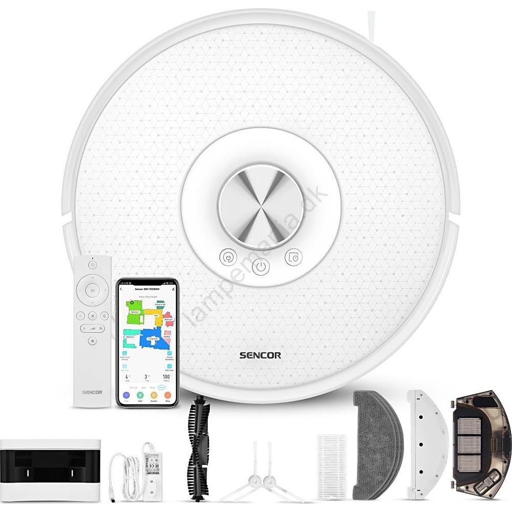 • Du kan styre den via knappen på støvsugeren, fjernbetjening eller via Sencor HOME-appen (kompatibel med iOS og Android) over Wi-Fi.