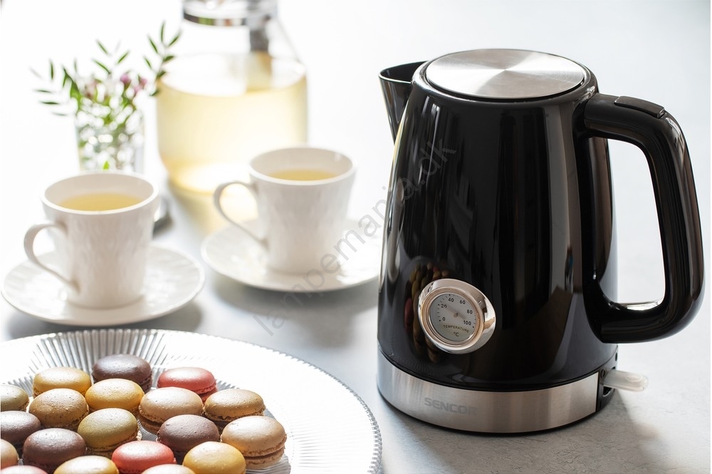 • Elkedel med indbygget termometer, så du kan opnå den optimale temperatur til forskellige slags te, kaffe m.m.