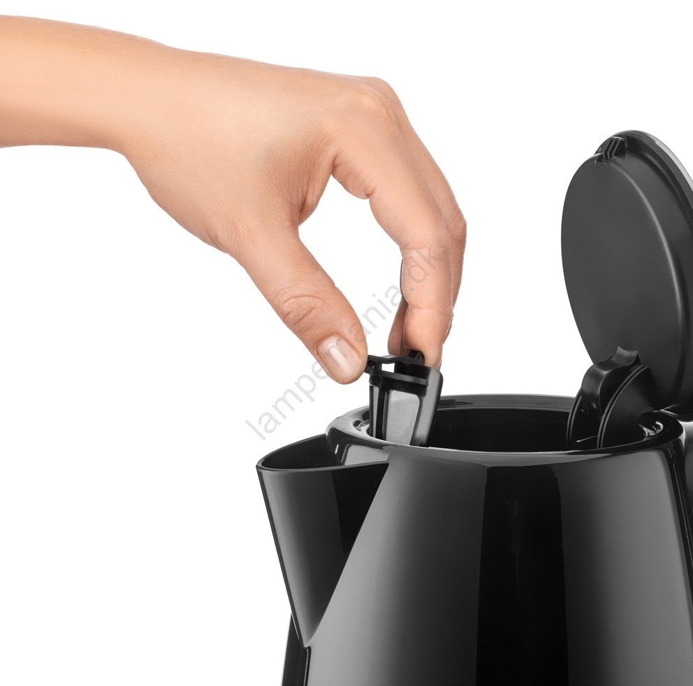 • For øget sikkerhed indeholder kedlen bl.a. overophedningsbeskyttelse ved tænding uden vand, en indikatorlampe, sikkerhedslås på låget og automatisk slukning, når kogepunktet er nået.