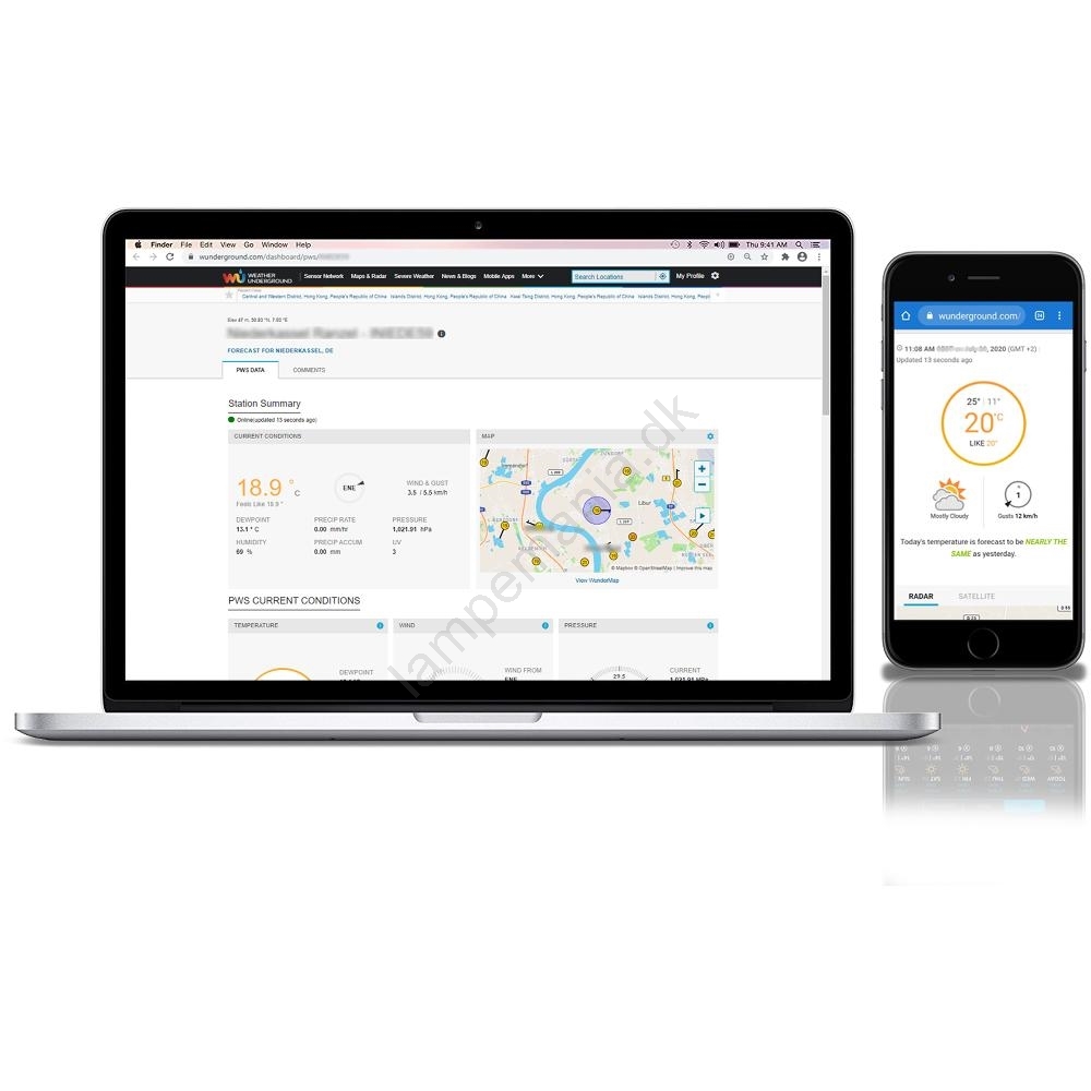 • Understøtter globale offentlige meteorologiske platforme Weather Underground og Weathercloud + én egen platform.