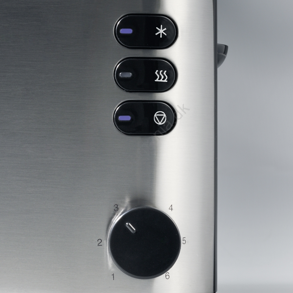 • Automatisk brødrister med lange riller i rustfrit stål og sort.