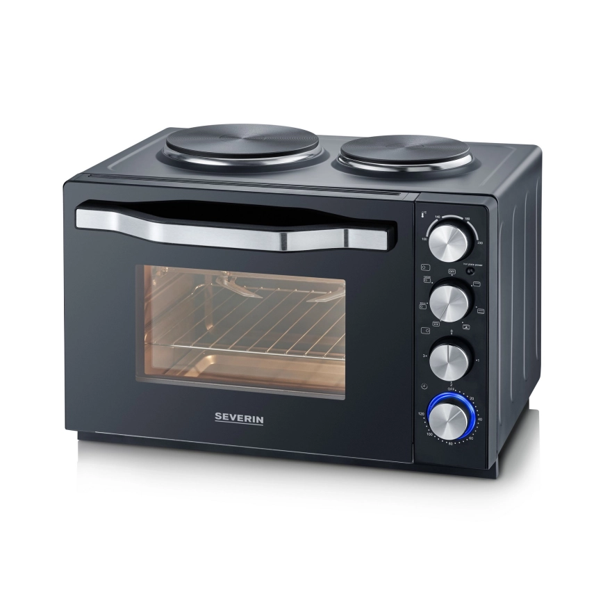 Severin TO 2074 - Varmluftovn med grill og kogeplader, 2500 W/230 V, 30 l, sort