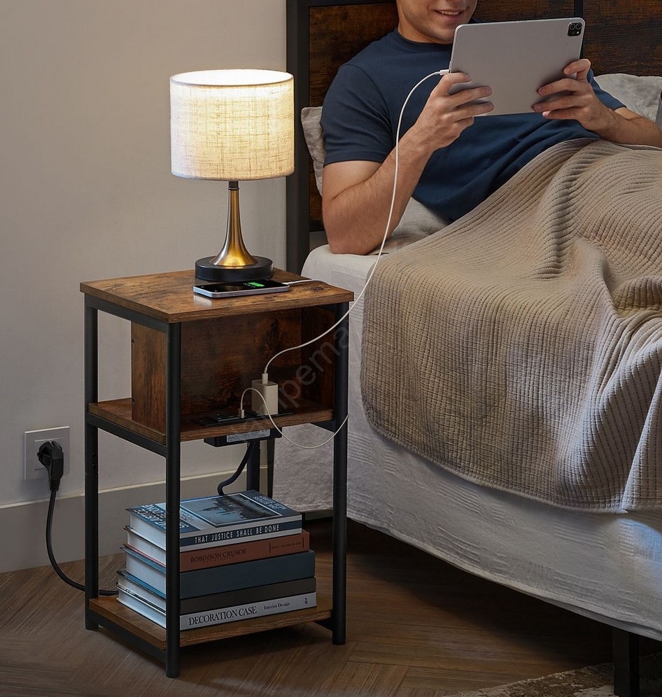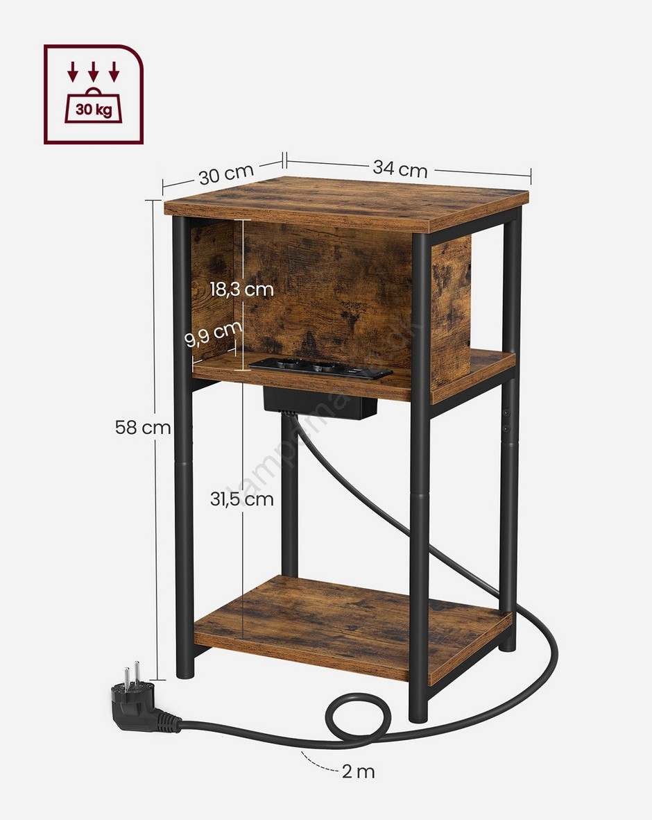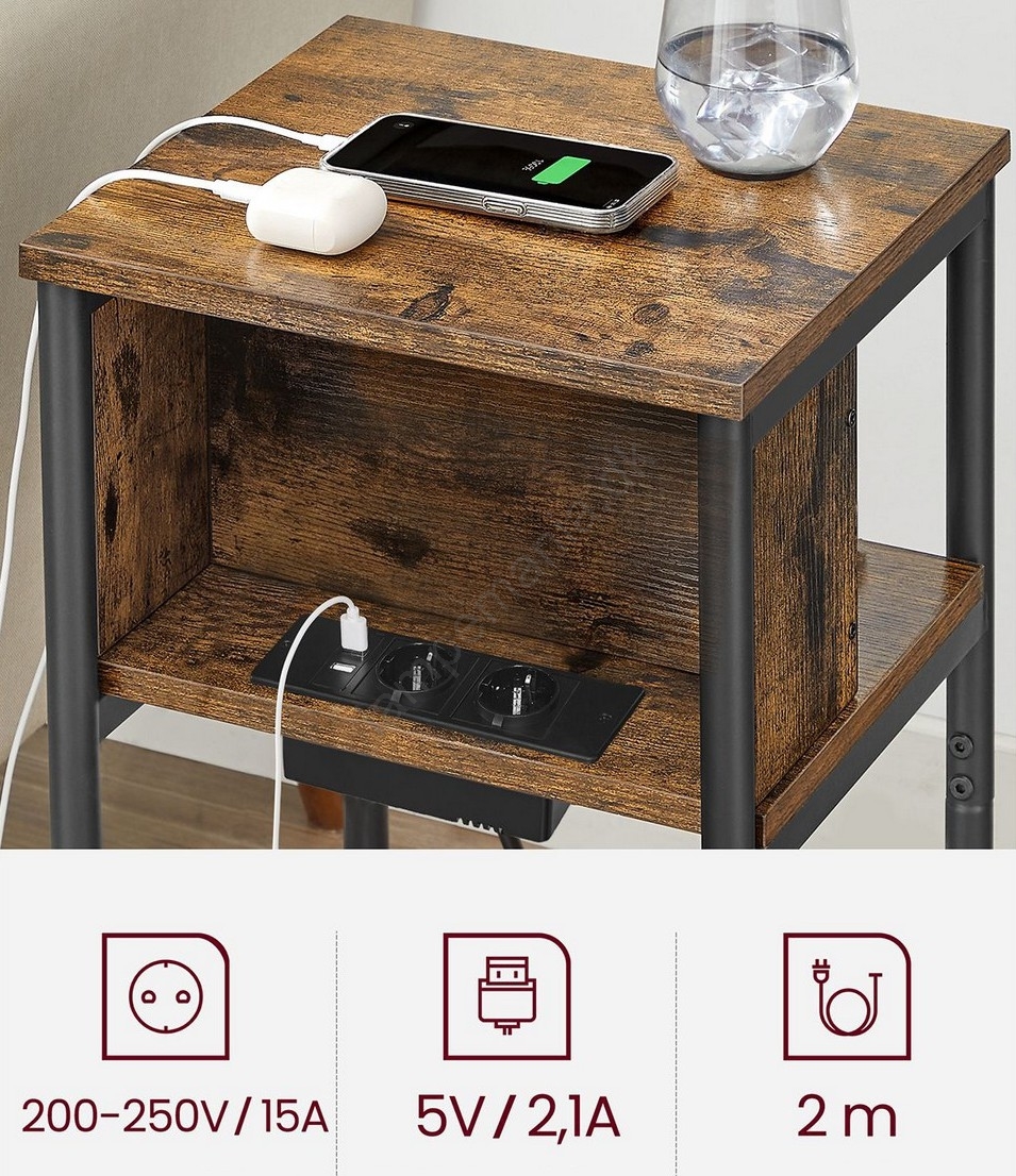 ROD sidebord med indbyggede stikkontakter og USB-porte, brun/sort