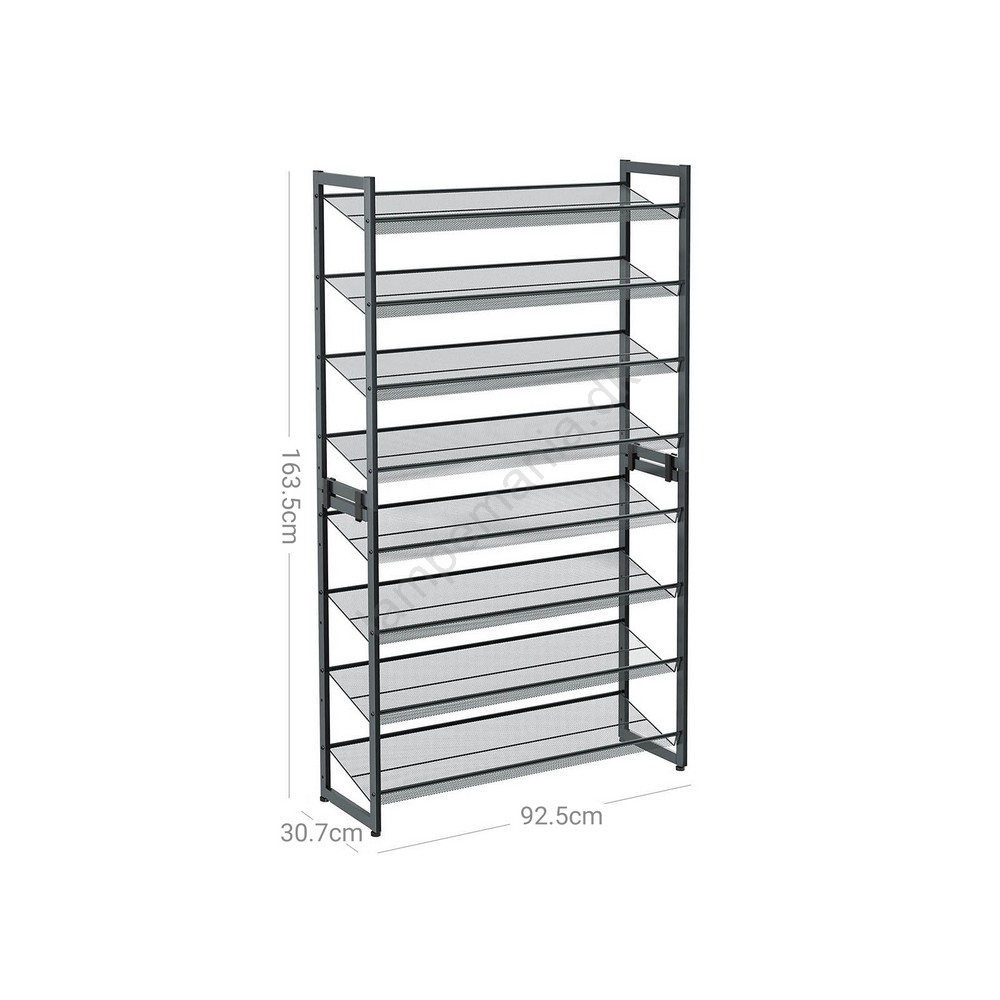 • Takket være sit slanke design fylder denne 8-etagers skoreol kun lidt på gulvet, men tilbyder samtidig rigelig opbevaringsplads.