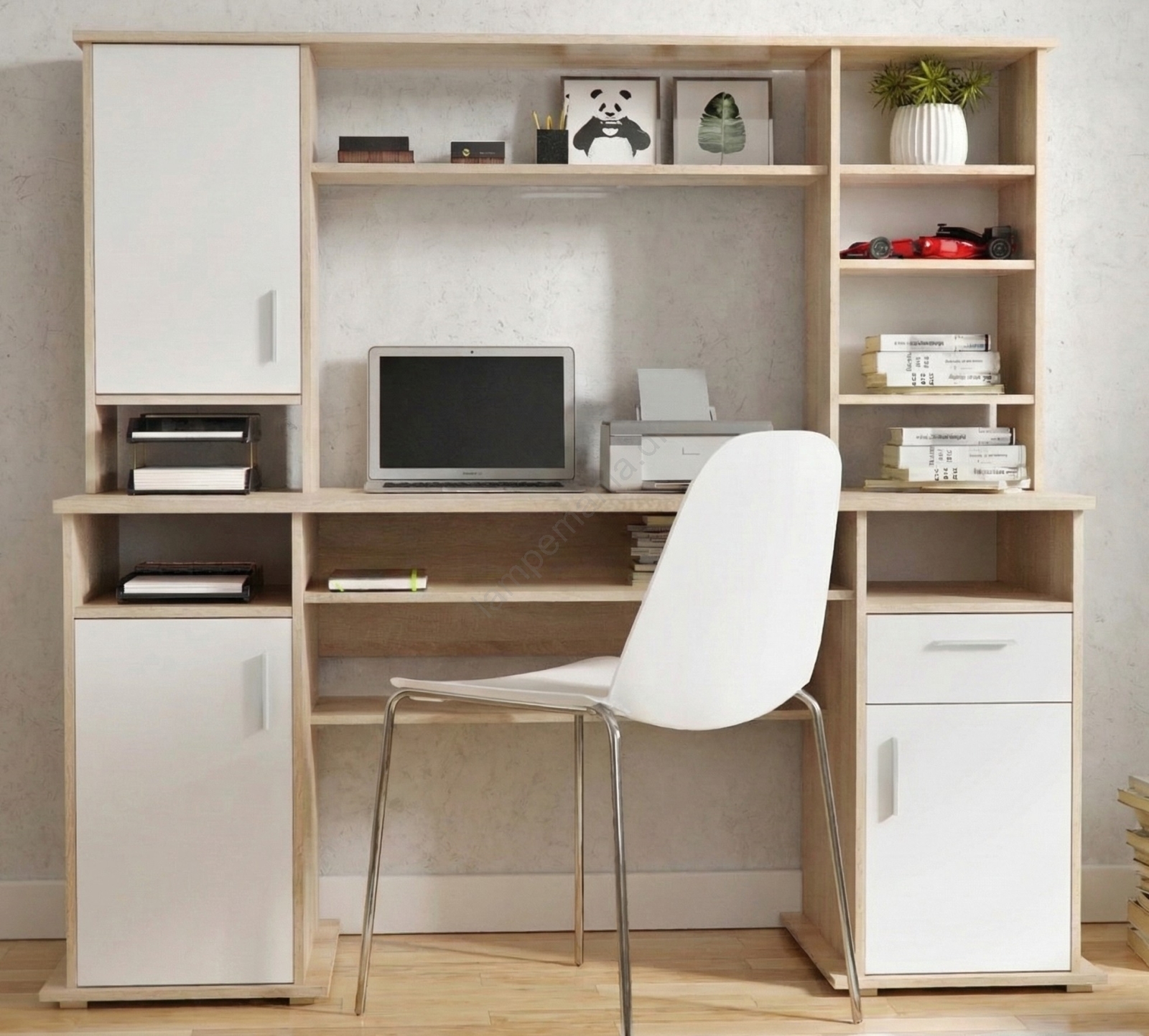 Skrivebord med hylde ELIAN sonoma-eg/hvid