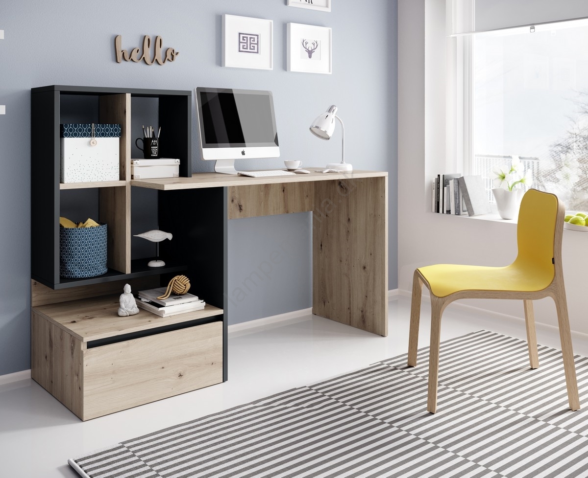 • Skrivebord med hylde MARLO, eg artisan/antracit