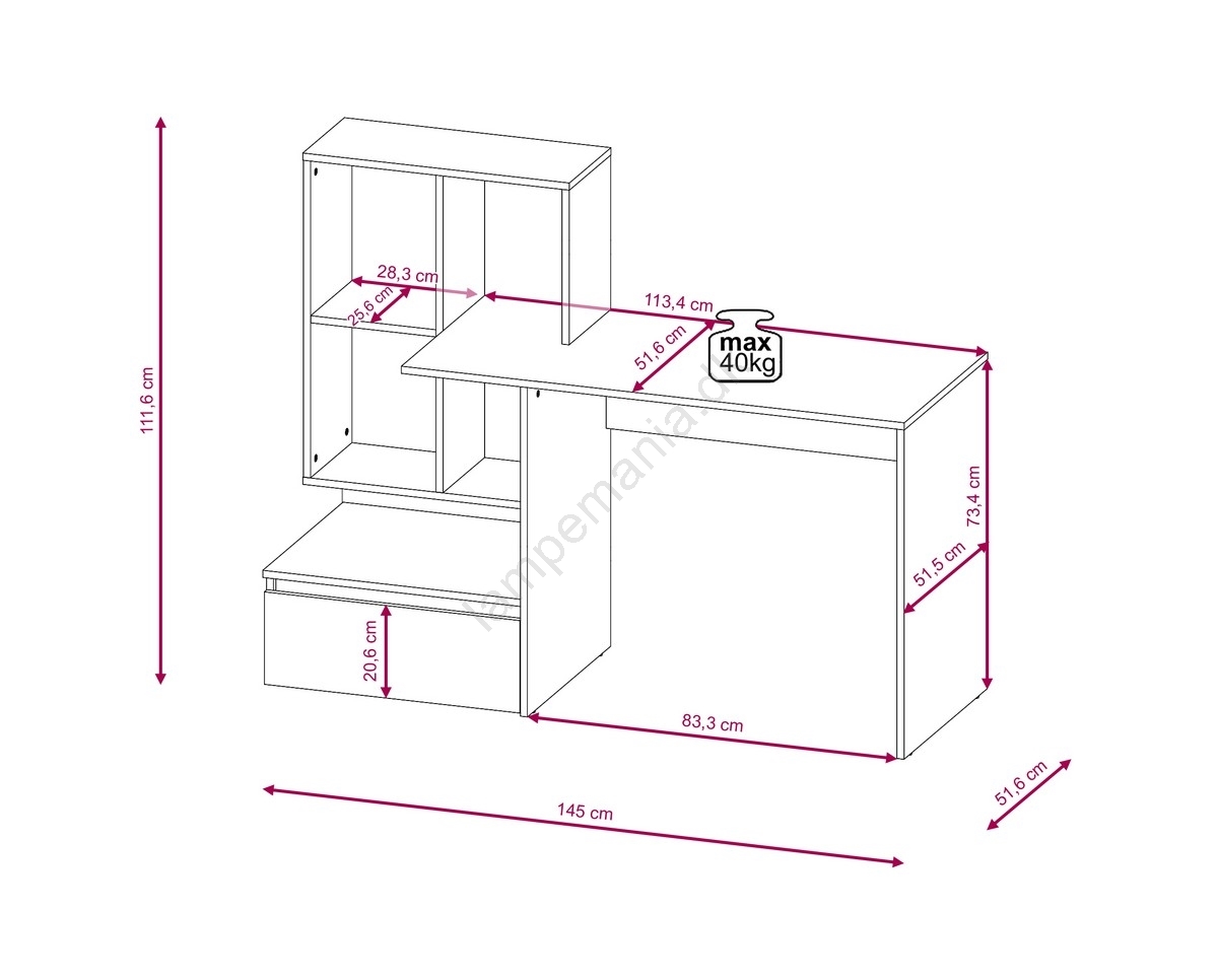 • Den enkle konstruktion gør det perfekt til små hjemmekontorer, studieværelser eller kreative arbejdsrum.
