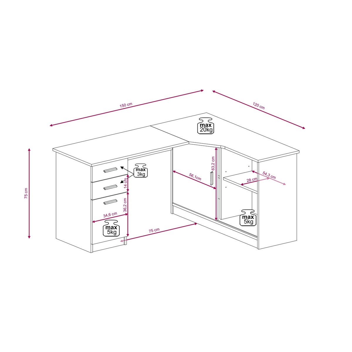 • Takket være det enkle design passer det perfekt til små hjemmekontorer, kollegieværelser eller kreative arbejdsrum.