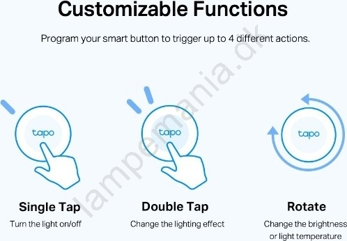 • Trådløs smartknap til styring af lys og andre enheder i dit smarte hjem.