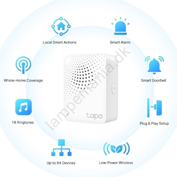• Tapo H100 er en intelligent centralenhed til det smarte hjem, der forbinder flere Tapo-enheder og muliggør deres koordination via én enkelt app.