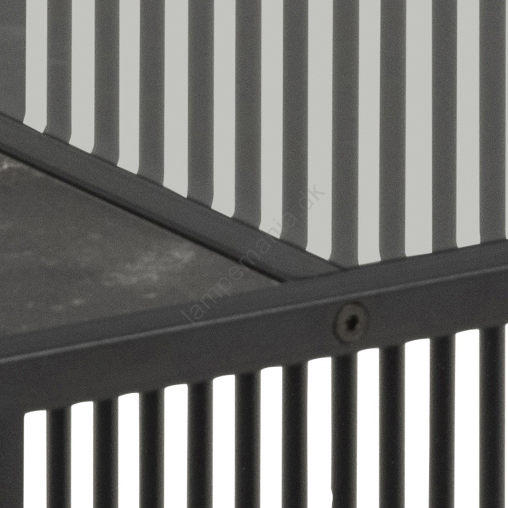 • Top i mat sort Izmir grov melamin og røgfarvet hærdet glas, base i mat sort grov pulverlakeret stål med åben rum.