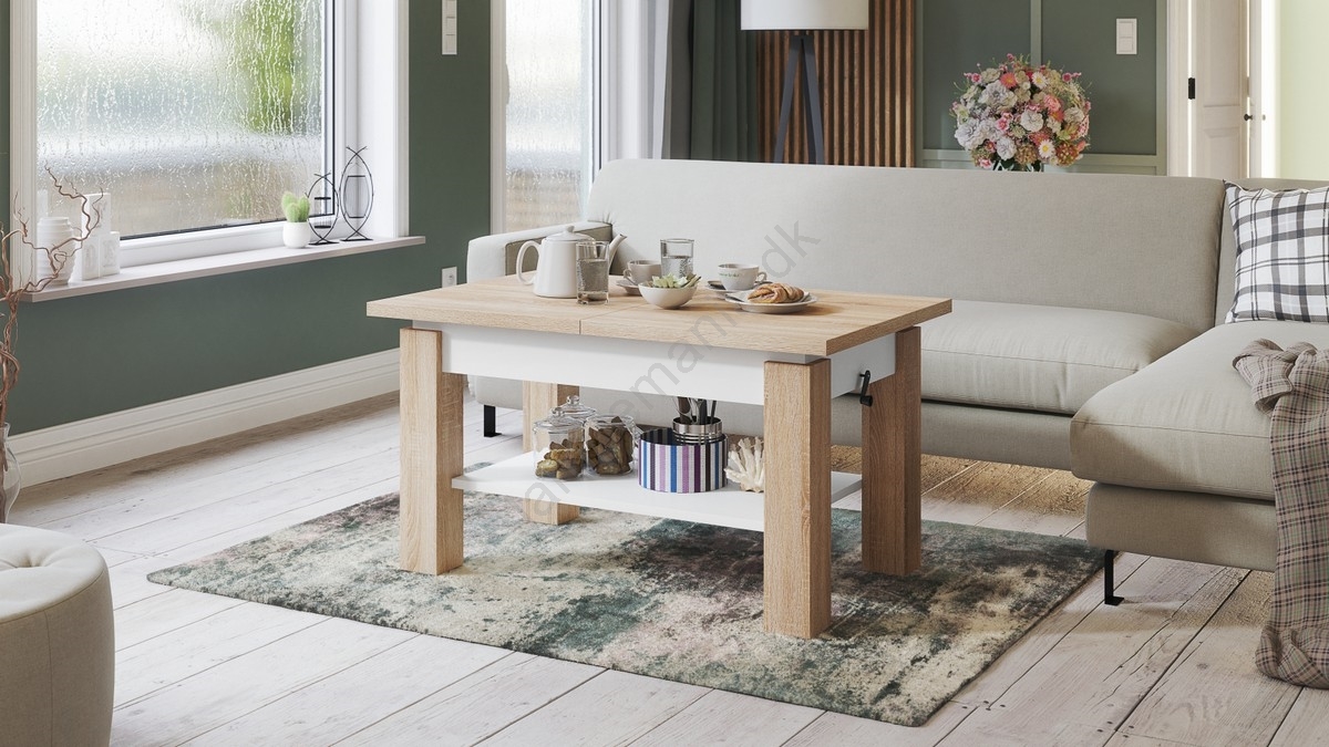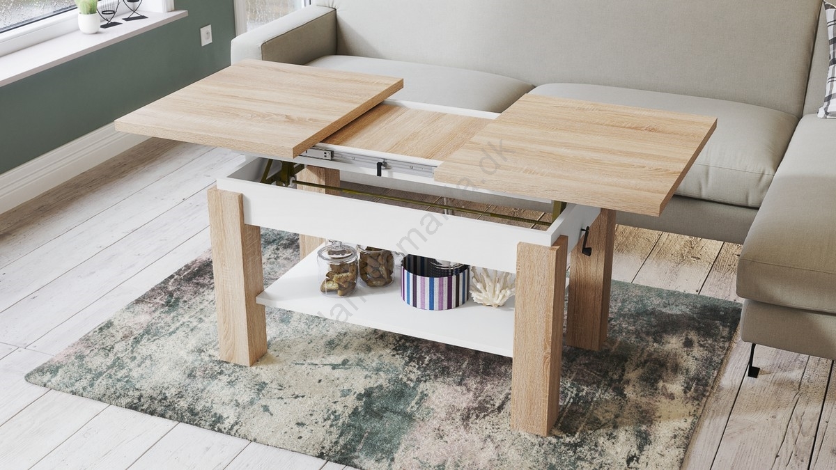 • Udtrækkeligt sofabord/spisebord med hylde ADONIS sonoma-eg/hvid