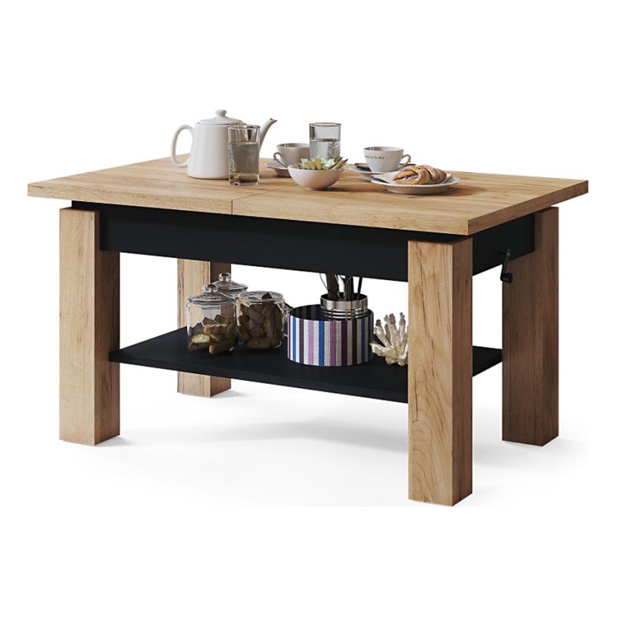 Udtrækkeligt sofabord med hylde ADONIS 110/150x68 cm craft-eg/sort