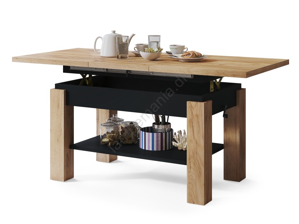 • Udtrækkeligt sofabord med hylde ADONIS 110/150x68 cm craft-eg/sort