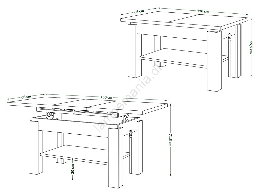 • Sofabord med hæveplade ADONIS