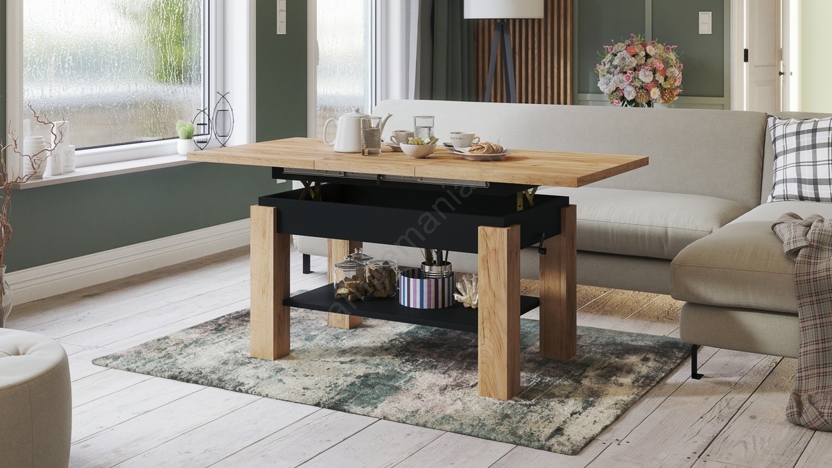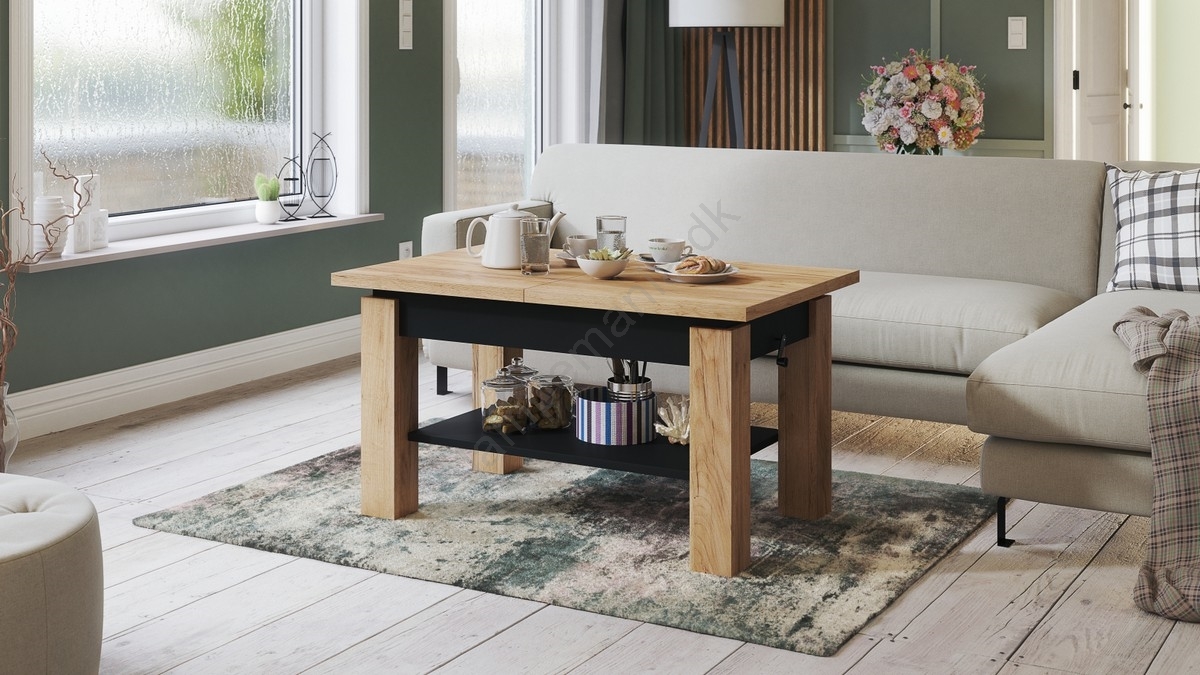 • Udtrækkeligt sofabord/spisebord med hylde ADONIS eg craft