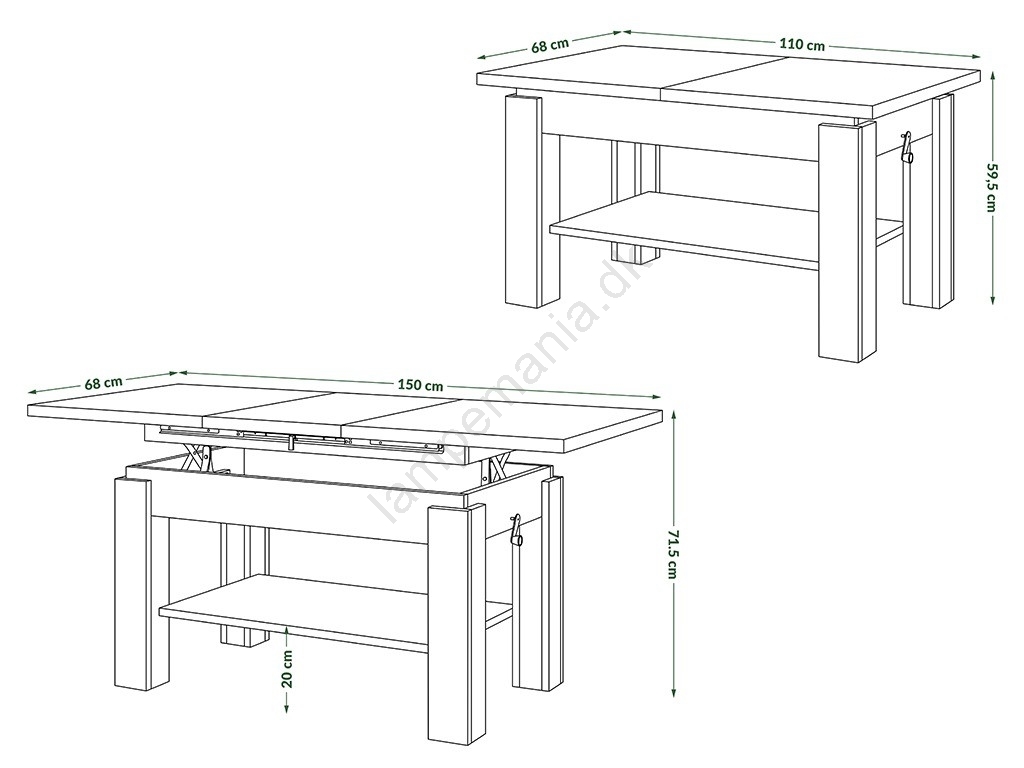 • Udtrækkeligt sofabord med hylde ADONIS 110/150x68 cm craft-eg/sort