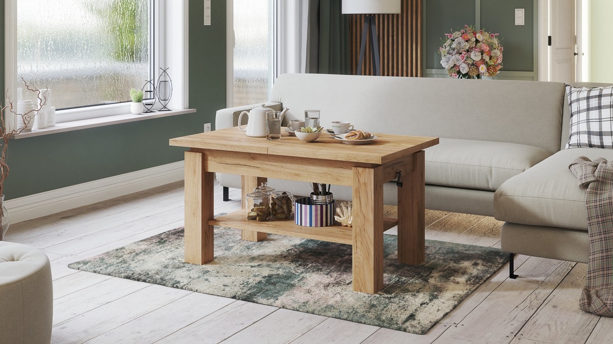• Udtrækkeligt sofabord/spisebord med hylde ADONIS eg craft