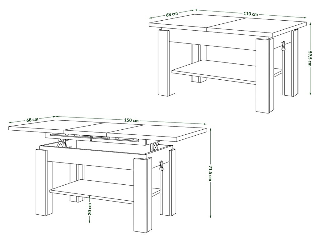 • Udtrækkeligt sofabord/spisebord med hylde ADONIS eg craft