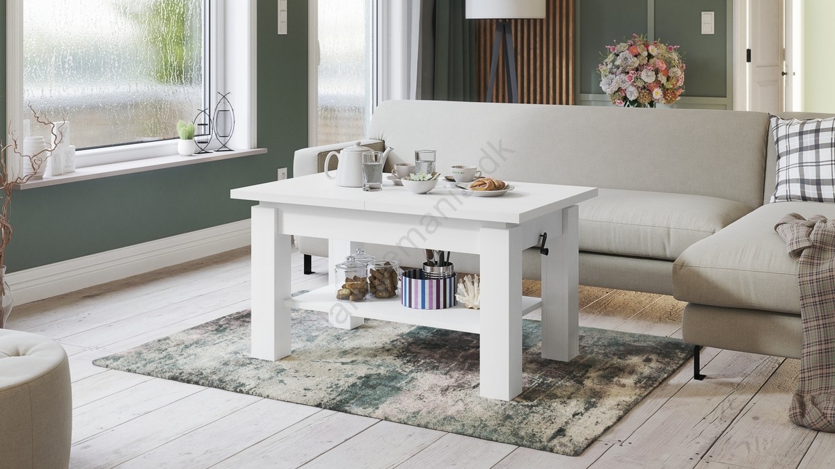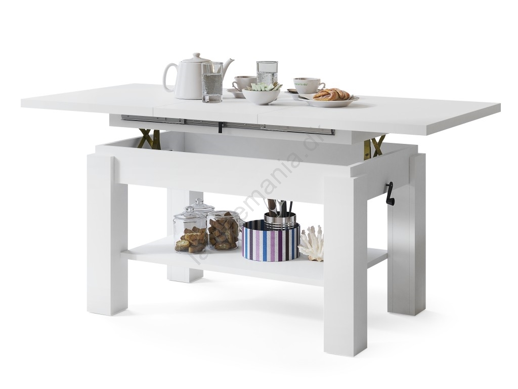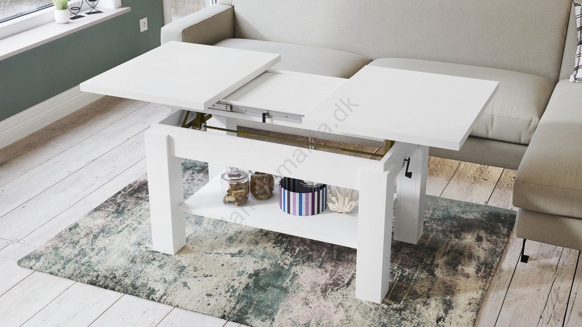 • Udtrækbart sofabord/spisebord med hylde ADONIS hvid