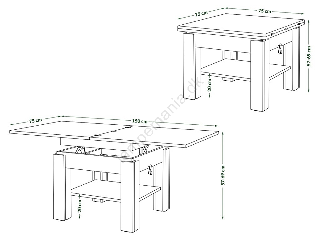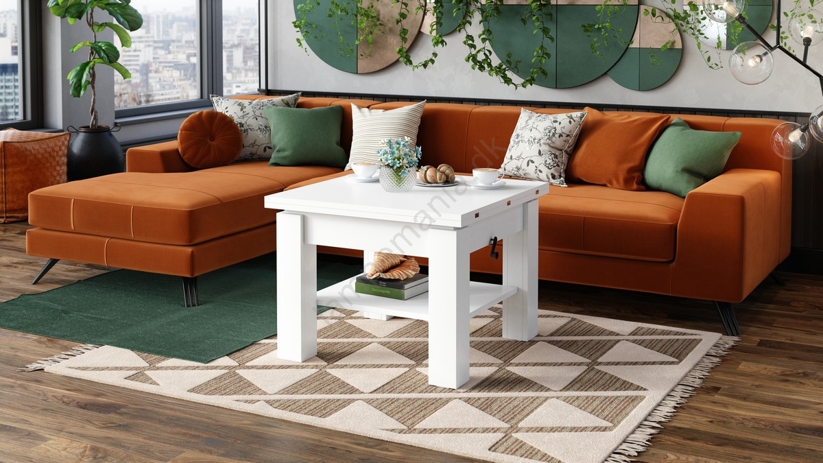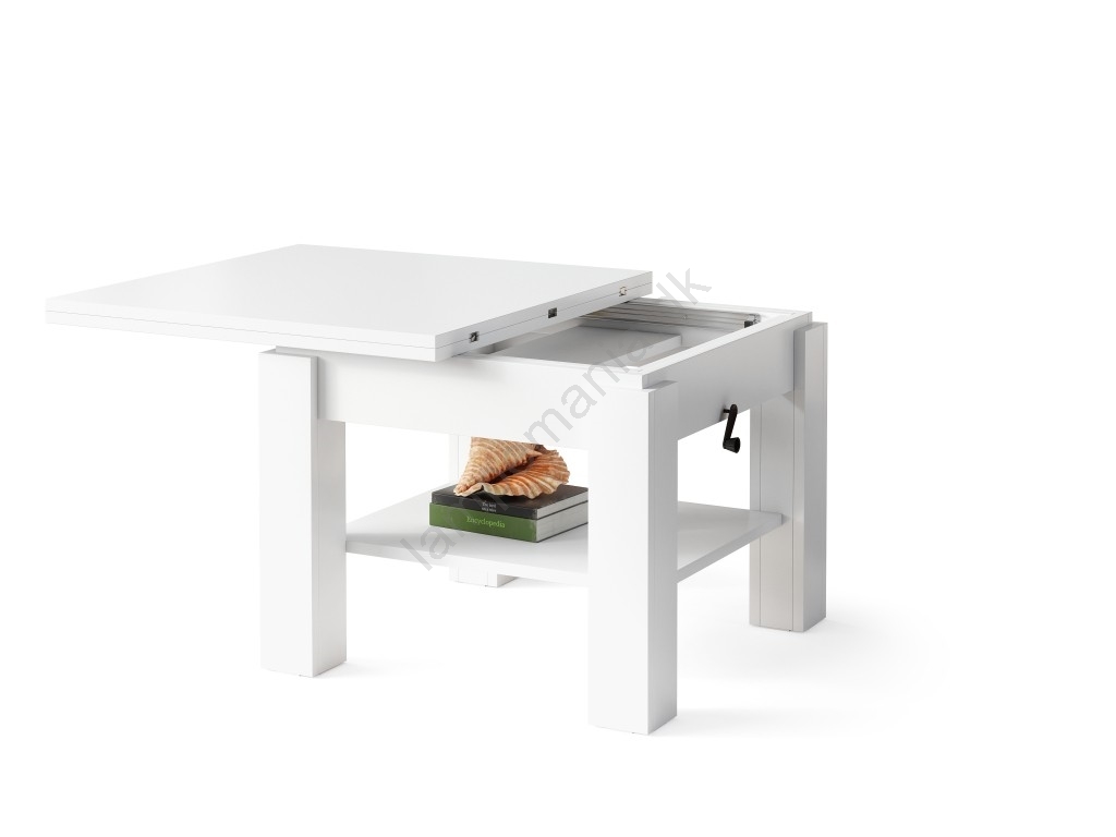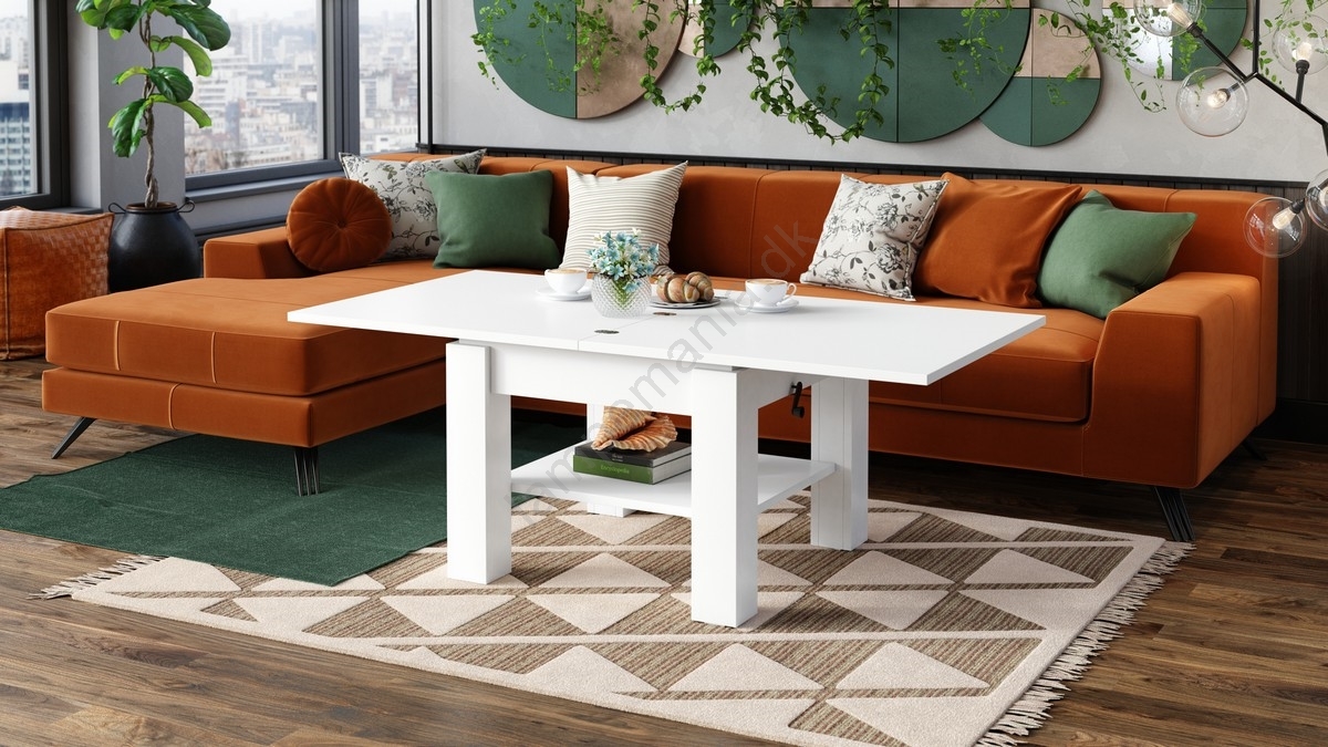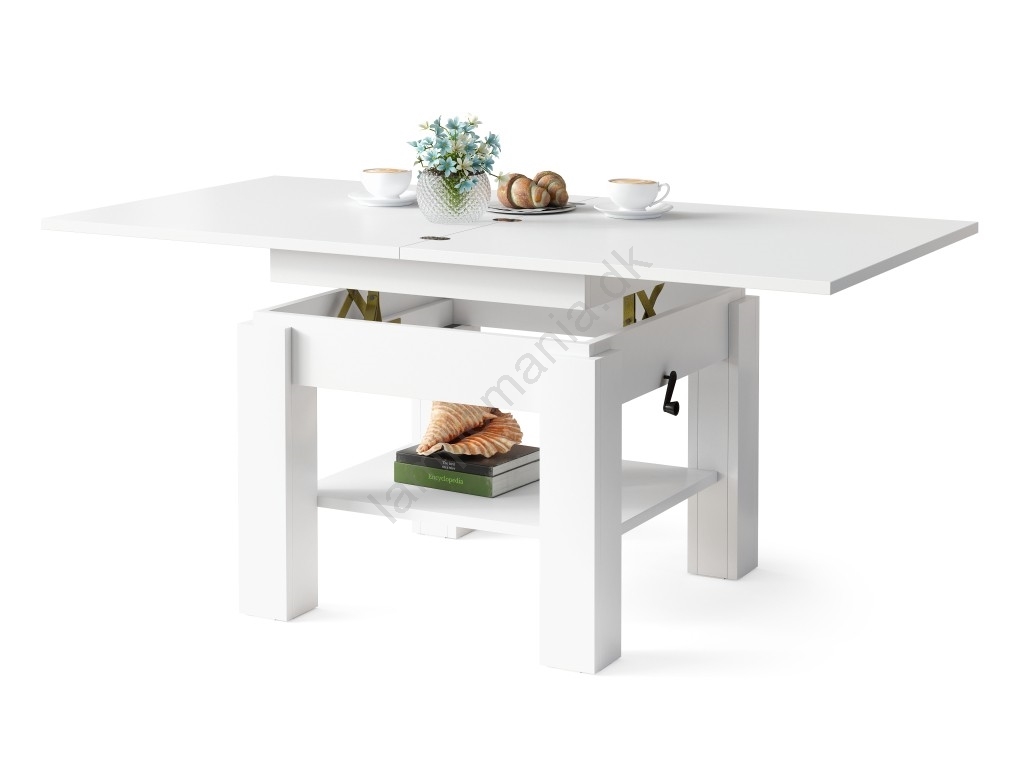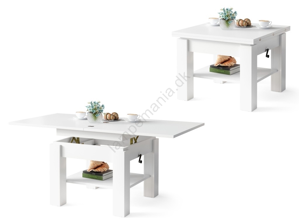 • Udtrækbart sofabord/spisebord med løftbar bordplade CALEB i hvid