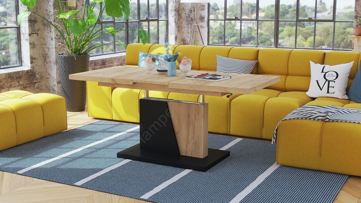 • Udtrækkeligt sofabord med løftbar bordplade NINO