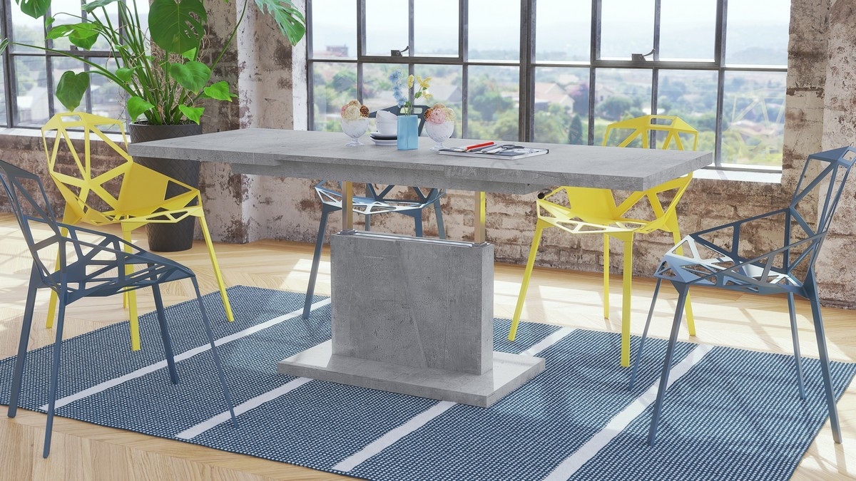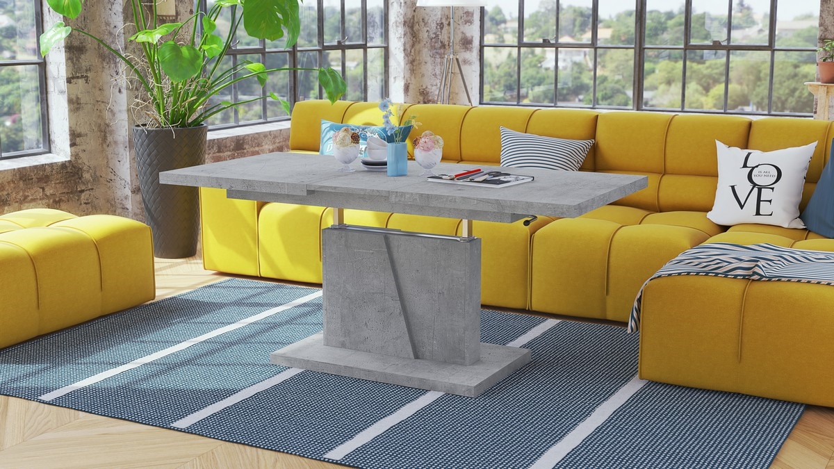 Udtrækkeligt sofabord/spisebord NINO med løftbar bordplade, betongrå