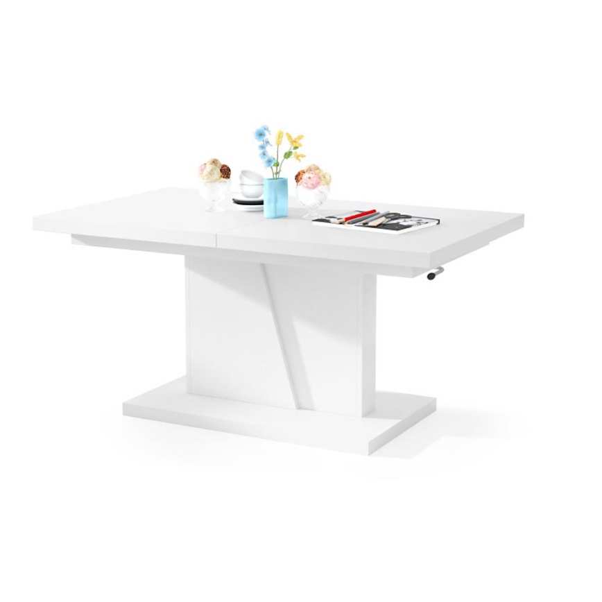 Udtrækkeligt sofabord/spisebord med løftbar bordplade NINO hvid